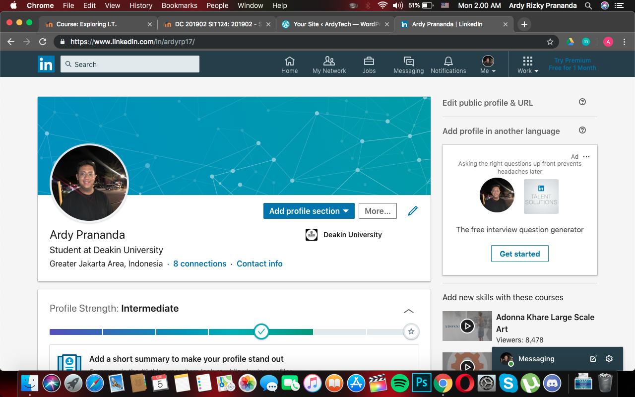 I have set up a LinkedIn account for me to be able to connect with fellow students, professionals and employers as well as showcasing my educational and other records necessary for my career.